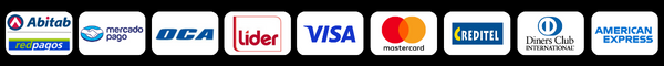 1. Tarjetas de crédito o débito: OCA, Visa, Master Card, Creditel, Lider, American Express, Diners Club, etc. Dependiendo de tu tarjeta podés pagar hasta en 12 Cuotas sin recargo.